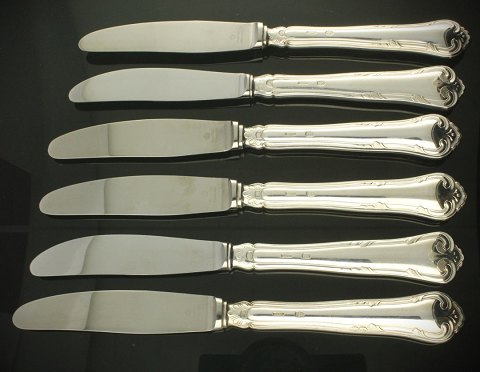Cohr - Seks 'Herregaard' knive af sølv med skafter af stål. Stemplet 830S, Cohr. Længde: 19 cm.