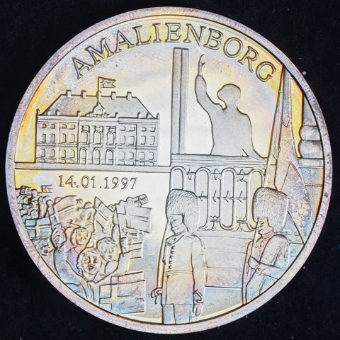 Medaille af sølv, præget i anledning af Dronningens 25 års regeringsjubilæum d. 14. januar 1997.