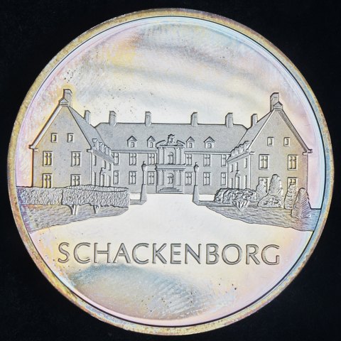 Erindringsmedaille, præget i anledning af Prins Joachim og Prinsesse Alexandras bryllup i Frederiksborg slotskirke 1995. Diam. 33 mm., finsølvindhold 13,5 gr.