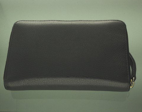 Mulberry 'Medium zip around' pung. Ref nr. RL5003/205A100. Udført af sort læder med gyldent hardware. Indvendigt opdelt med plads til kort, mønter og sedler. H. 11 B. 15 D. 2,5 cm.