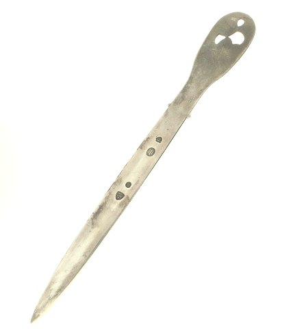 Brevåbner udført af tretårnet sølv. Længde: 18 cm. Vægt: ca. 25 gr.