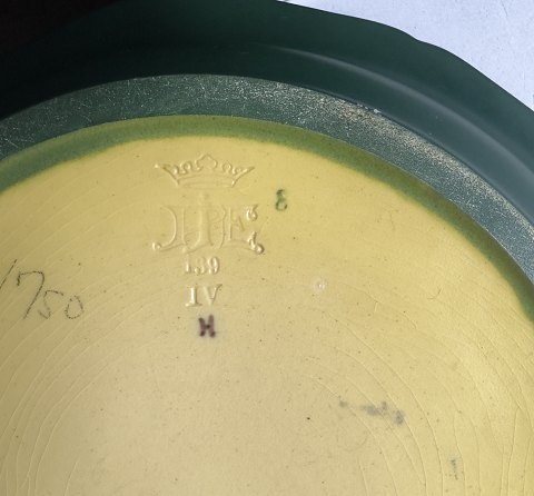 Frugtfad dekoreret med fisk og tang. Formgivet af Axel Sørensen. Ø. ca. 28 cm. Dessin nr. 139