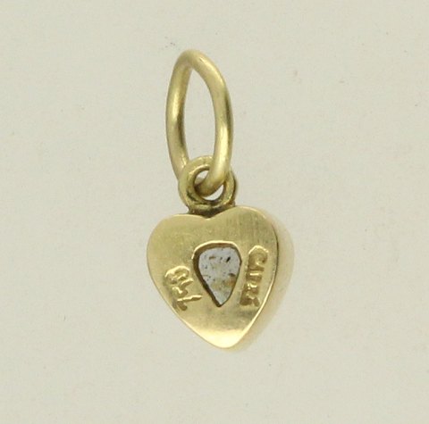 Lille hjertevedhæng udført af 18 kt. guld fattet med blå sten. Vægt: ca. 0,62 gr. Stemplet 750.