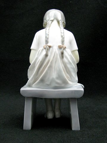 Bing & Grøndahl #1879, Pige på skammel, 18 cm., Design: Ingeborg Plockross Irminger