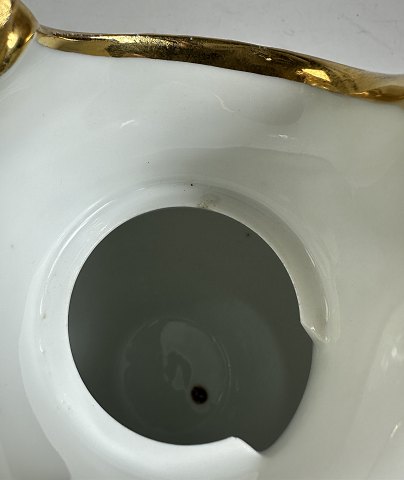 Fremstår med afslag indvendigt på kant ved låg samt afskalninger på guldkant. Uoriginalt låg.