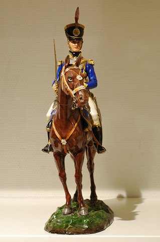 Figur af porcelæn, Capo di Monte, forestillende soldat fra Napoleonskrigene til hest. H. ca. 30 cm