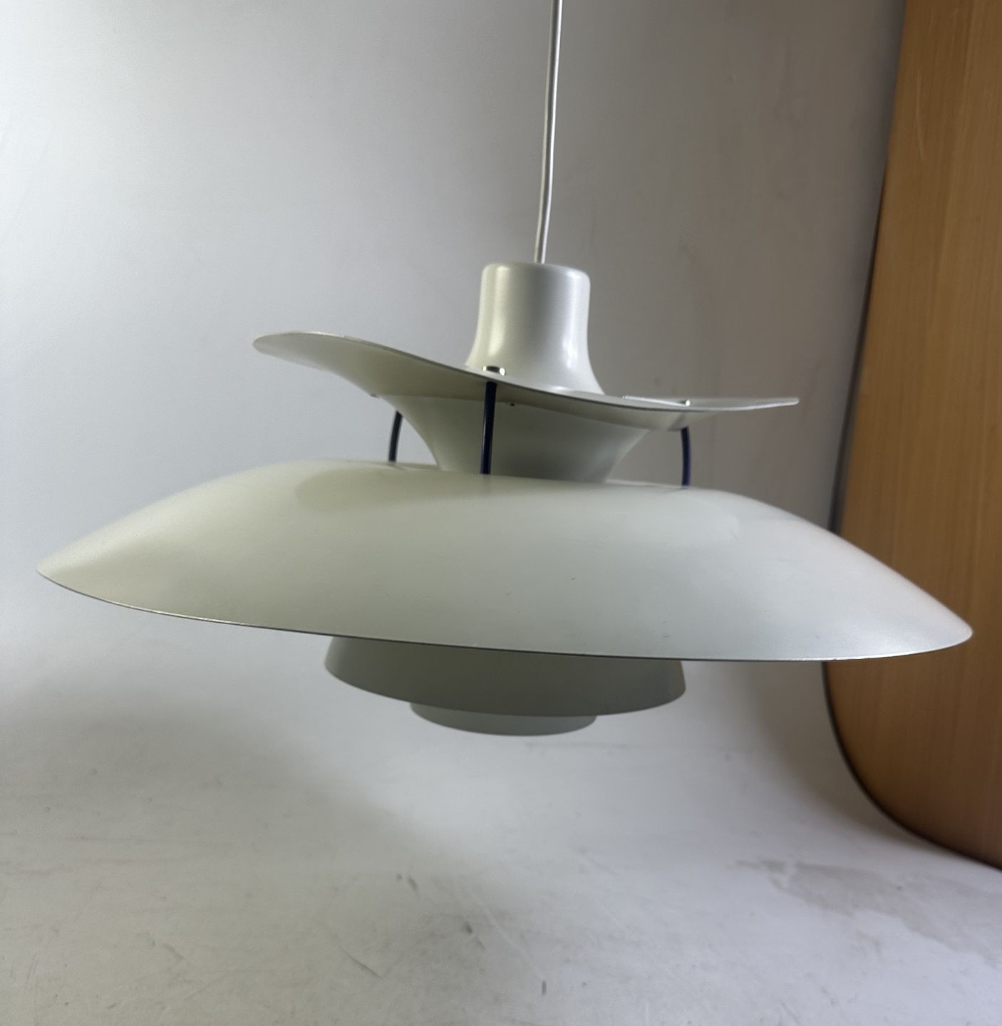 Poul Henningsen for Louis Poulsen - PH5 pendel med skærme af hvidlakeret metal. Ø. 50 cm. Formgivet omkring 1958. Fremstillet hos Louis Poulsen. Fremstår med kraftig skævhed.