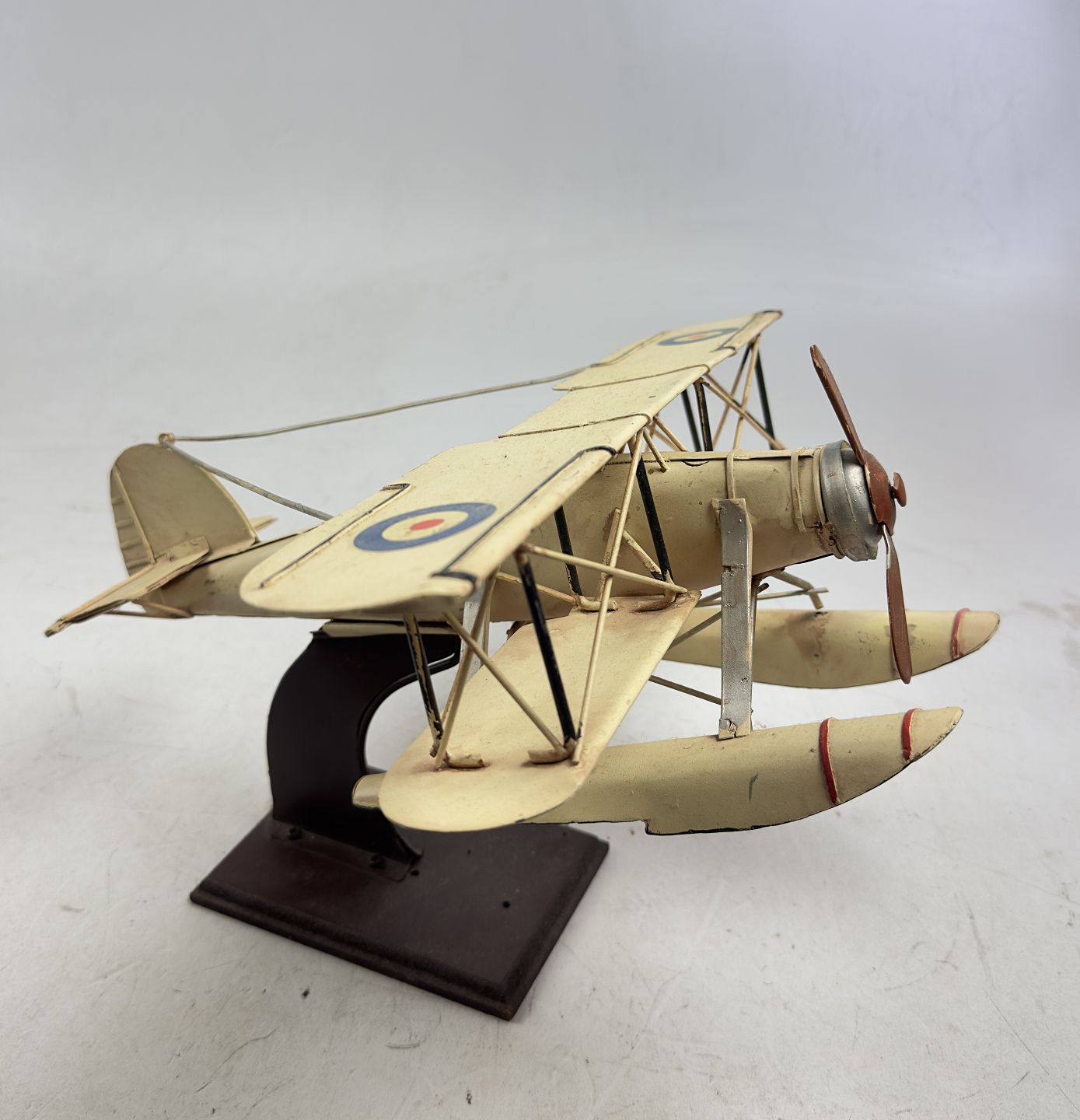 Vintage WWI Float BiPlane udført af metal / blik. L. ca. 30 cm.