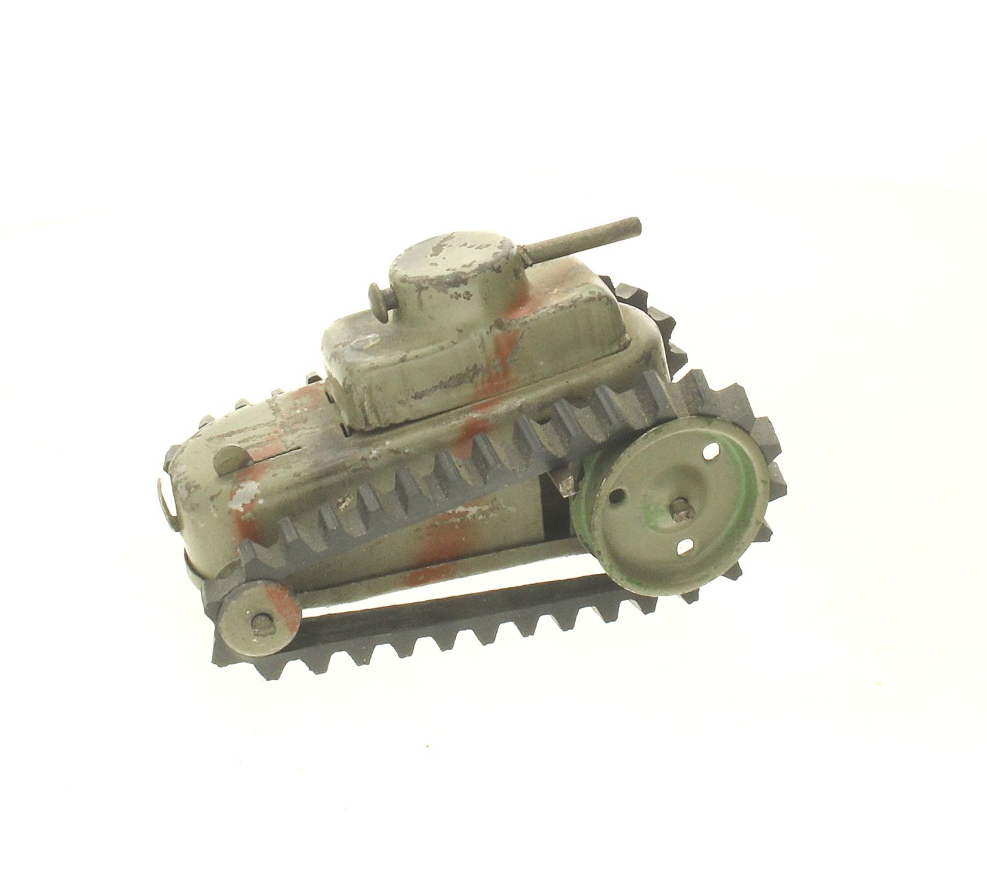 Tysk mekanisk tank samt kanon udført af blik / metal. Fremstillet ca. i slutningen af 1900-tallet / start 2000.