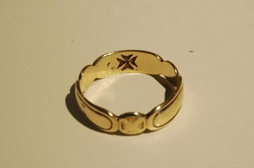 Herrering af guld 14 kt, Frimurerring - indvendig med malteserkors for 10. grad. Slidt ring i str. 67