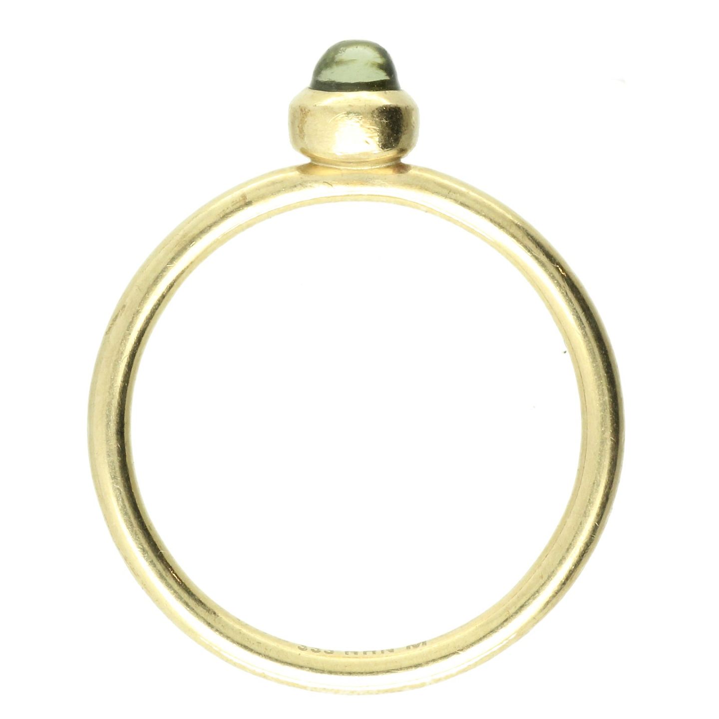 Spinning - Ring udført af 8 kt. guld fattet med grøn sten. Ringstr: 54,5. Vægt: ca. 1,22 gr.