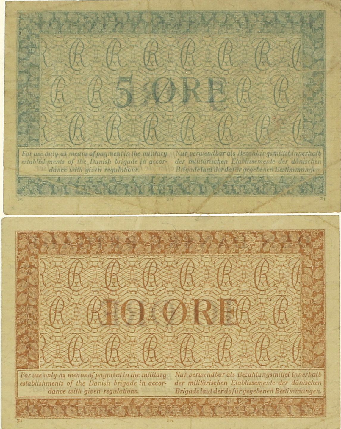 2 stk. militære sedler Den Danske Brigade 5-10 øre