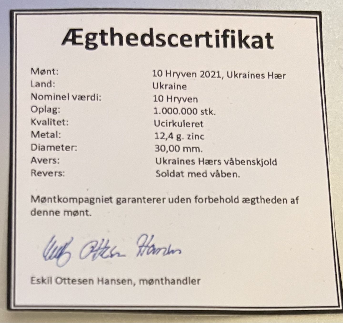 Ukraine - UNC - 10 Hryven - 2021 - Ukraines Hær - Zinc