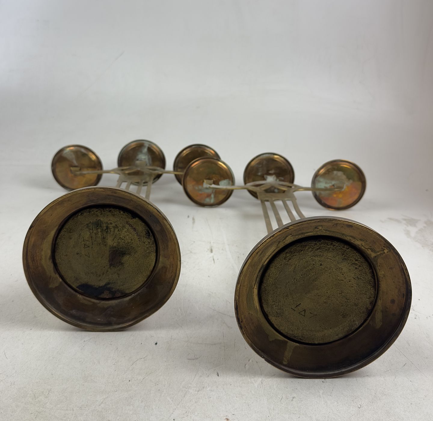 Et par trearmet Art Nouveau lysestager af messing (2)