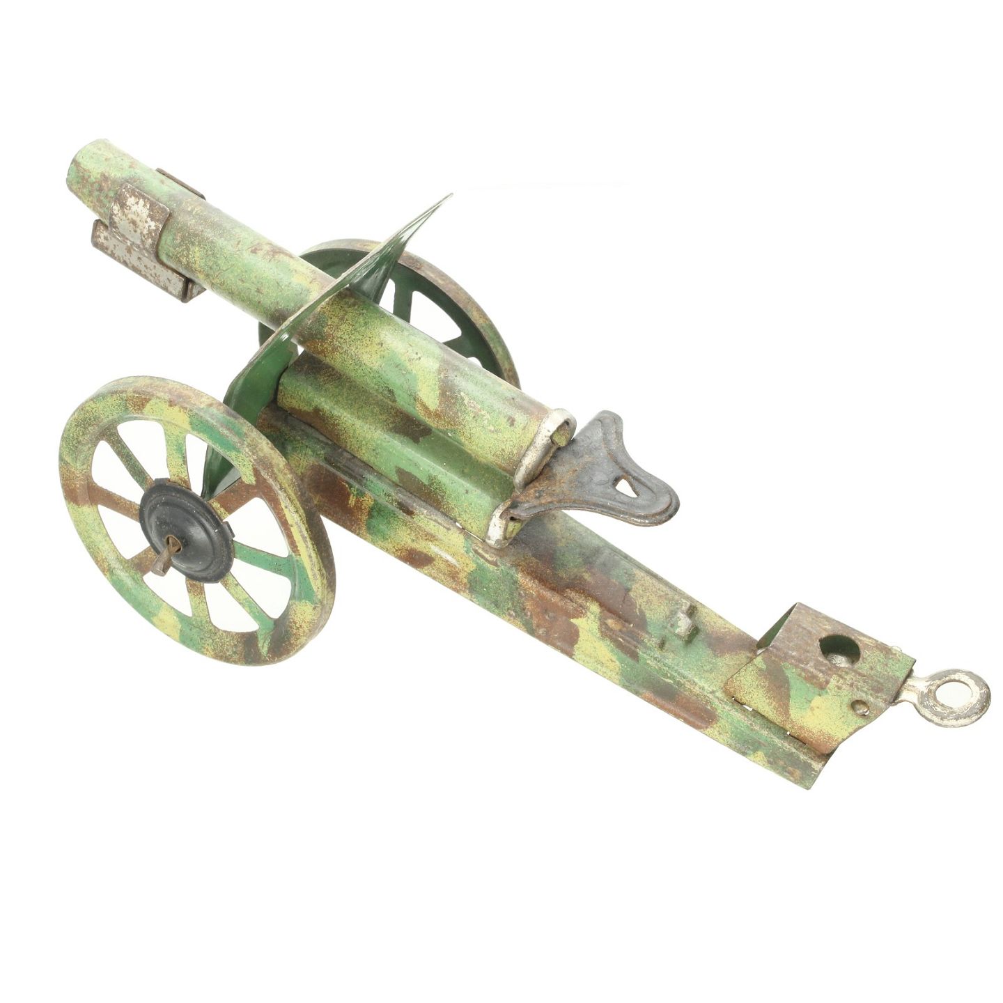 Blik haubitzer udført af camouflage bemalet blik. Produceret i 1930'erne i Tyskland. L. ca. 16 cm. Stemplet: Ideal, Patent, Germany.