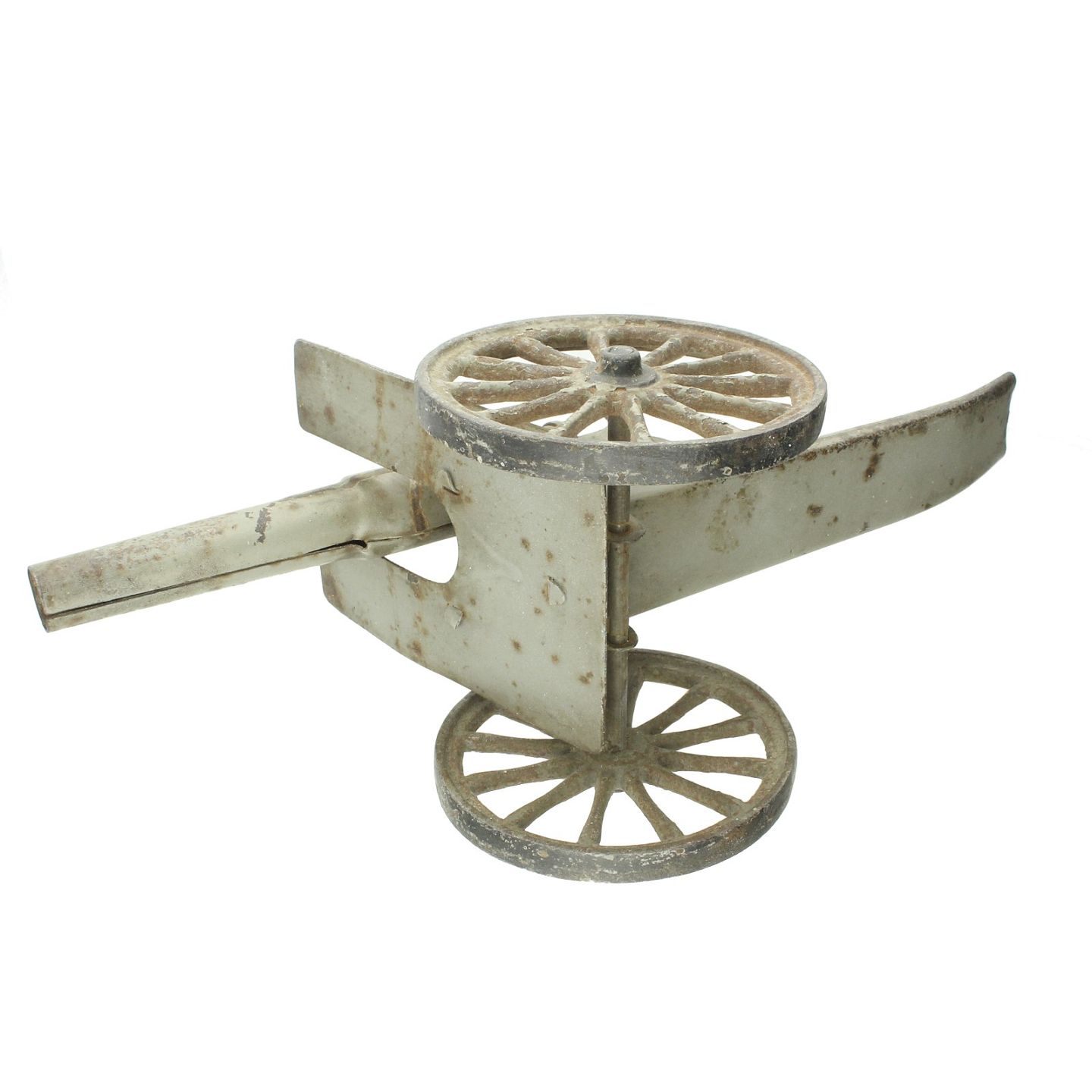 Ældre kanon udført af bemalet metal. Ca. 1900-tallets midten. H. 13 L. ca. 21,5 cm. Fremstår med rust.