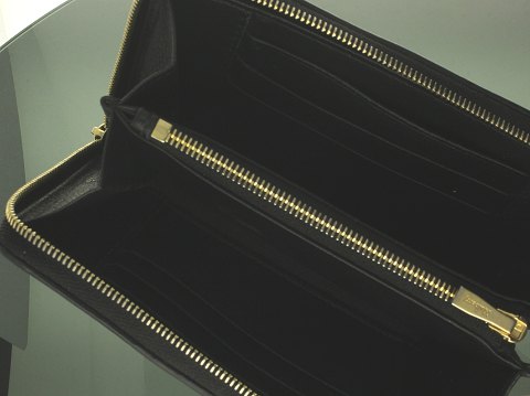 Mulberry 'Medium zip around' pung. Ref nr. RL5003/205A100. Udført af sort læder med gyldent hardware. Indvendigt opdelt med plads til kort, mønter og sedler. H. 11 B. 15 D. 2,5 cm.