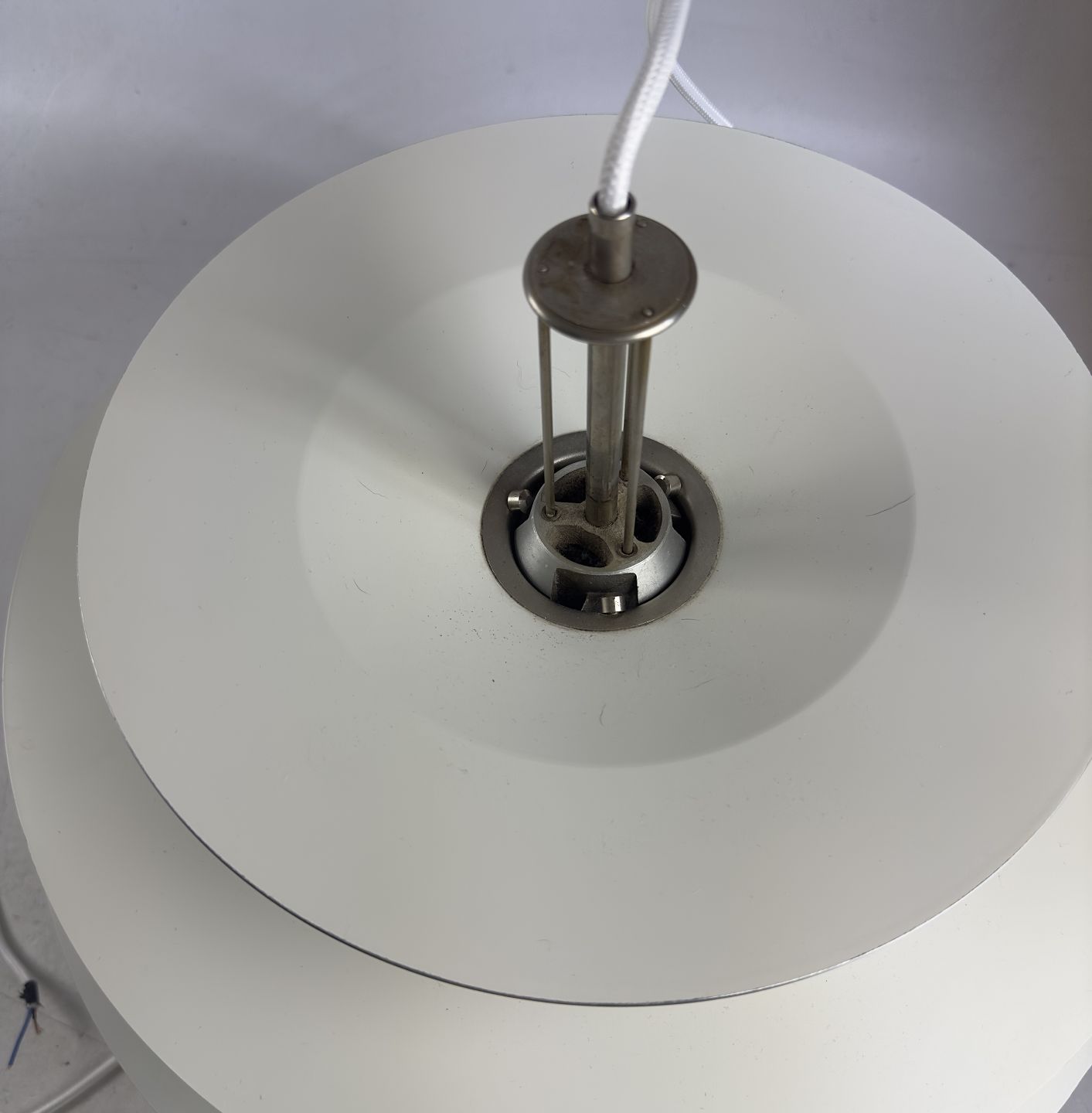 PH Kontrast, loftpendel med 10 forskelligt profilerede skærmringe og justerbart pendelstamme for regulering af kontrastbelysning. Kontrast lampen blev udviklet i årene 1958-62 og tidligere fremstillet hos Louis Poulsen hvor den ikke er i produktion længere. H. 36 cm., diam. 45 cm.