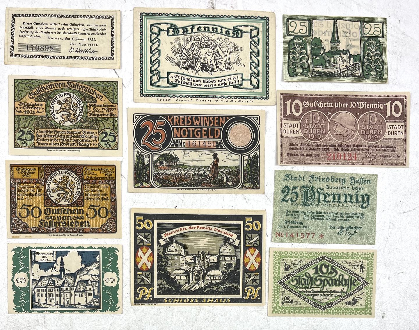 Under 1. verdenskrig begyndte man at trykke nødpengesedler i Tyskland. De skulle afhjælpe den mangel på skillemønt, som krigen havde medført. Fra at være en nødforanstaltning udviklede nødpengene sig til at være et samlerobjekt, hvor der blev gjort meget ud af sedlernes udsmykning.