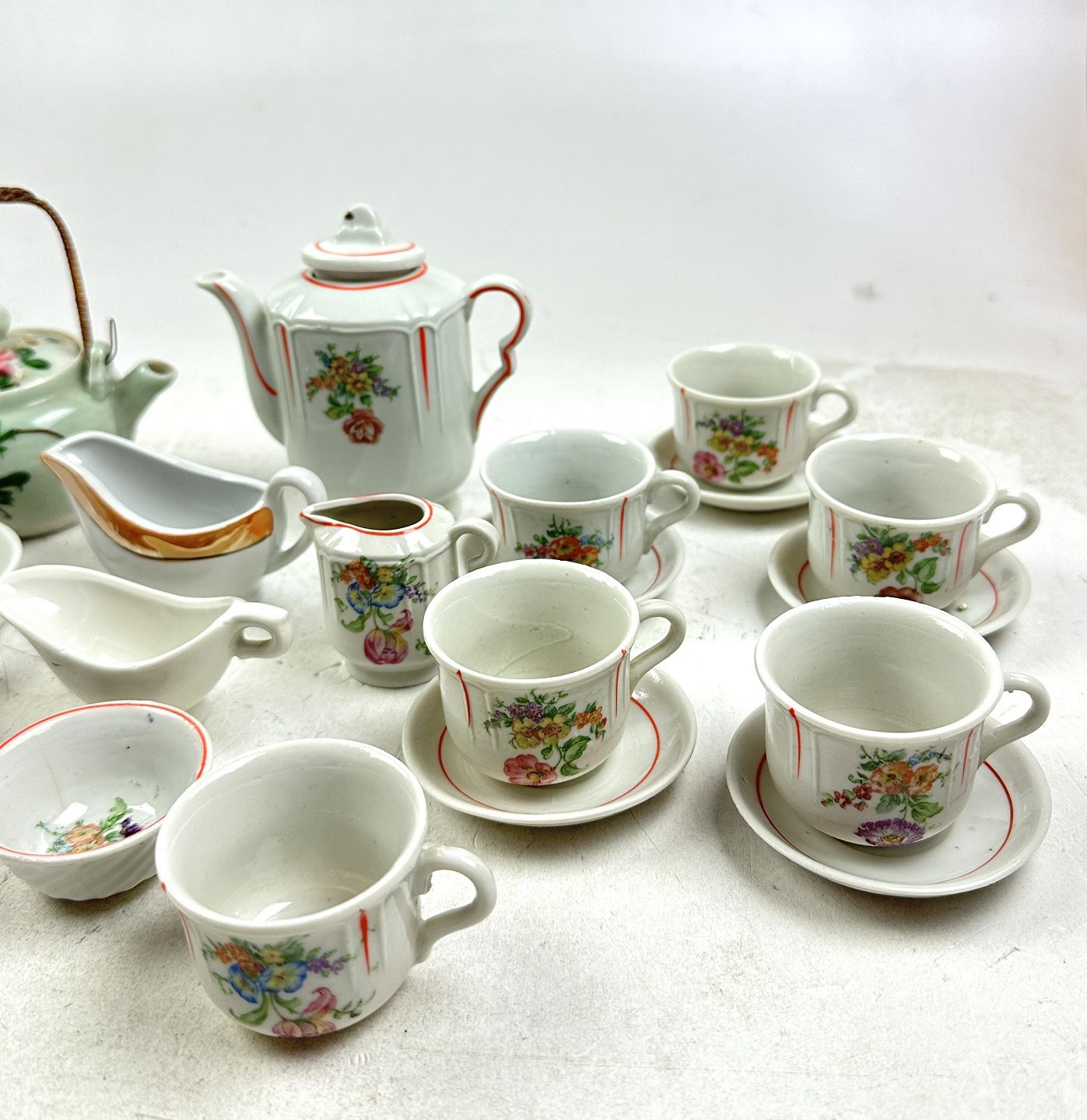 En samling diverse dukkehus dele af porcelæn (32)