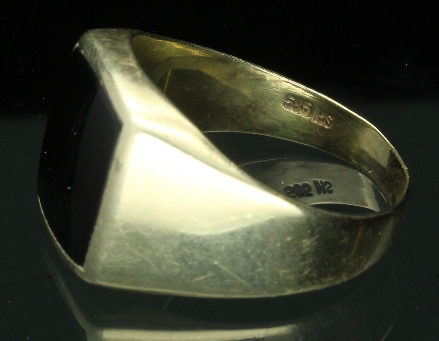 Herrering udført af 14 kt. guld fattet med sort sten. Ringstr: 60. Vægt: ca. 4,78 gr.