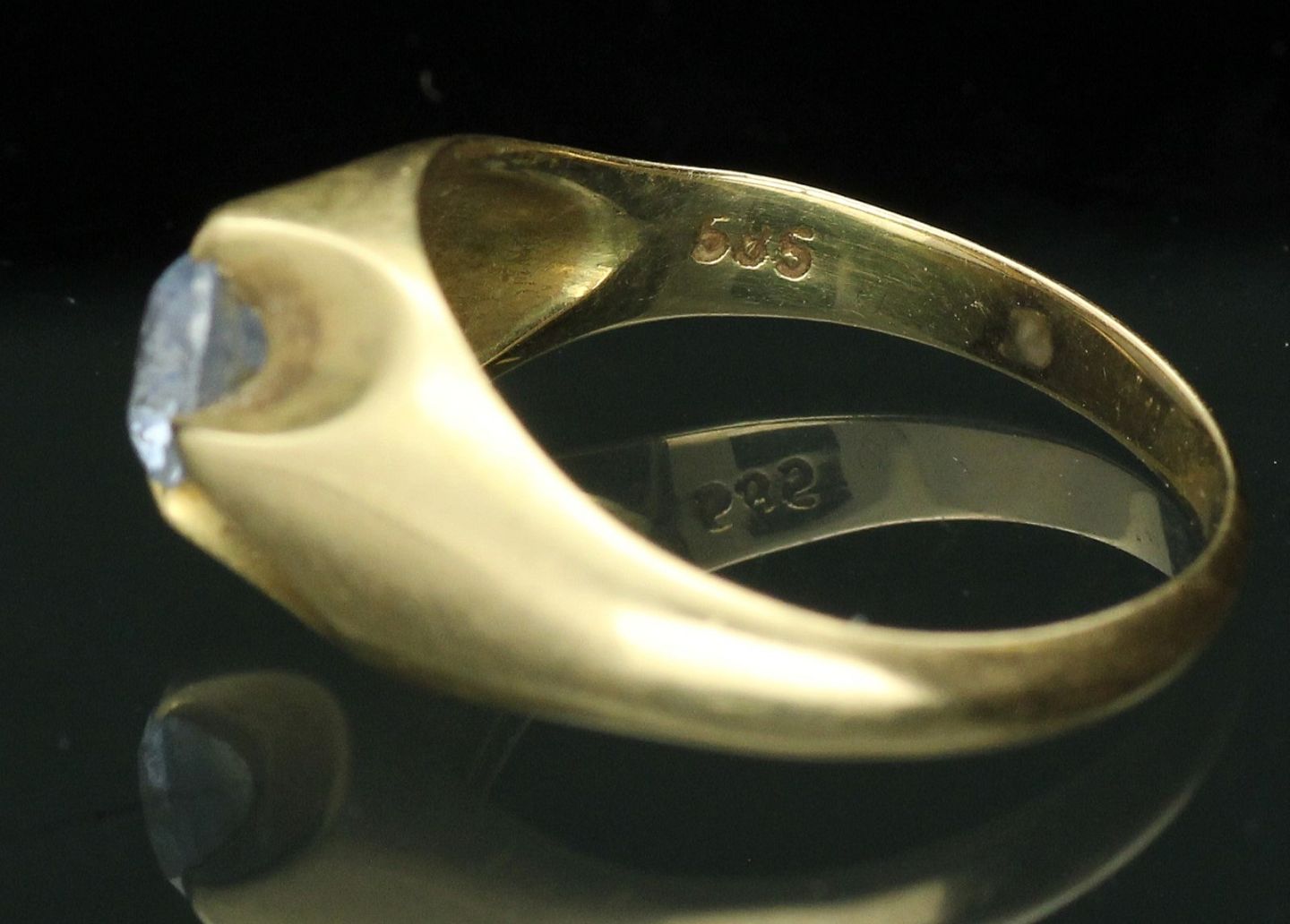 Ring af 14 kt. guld fattet med blå sten. Ringstr: 53,5. Vægt: ca. 2,92 gr.