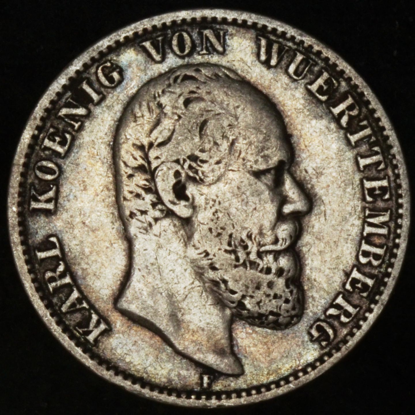 Tyskland - Württemberg - 2 Marks - 1877 - F - Charles I - Sølv KM# 626