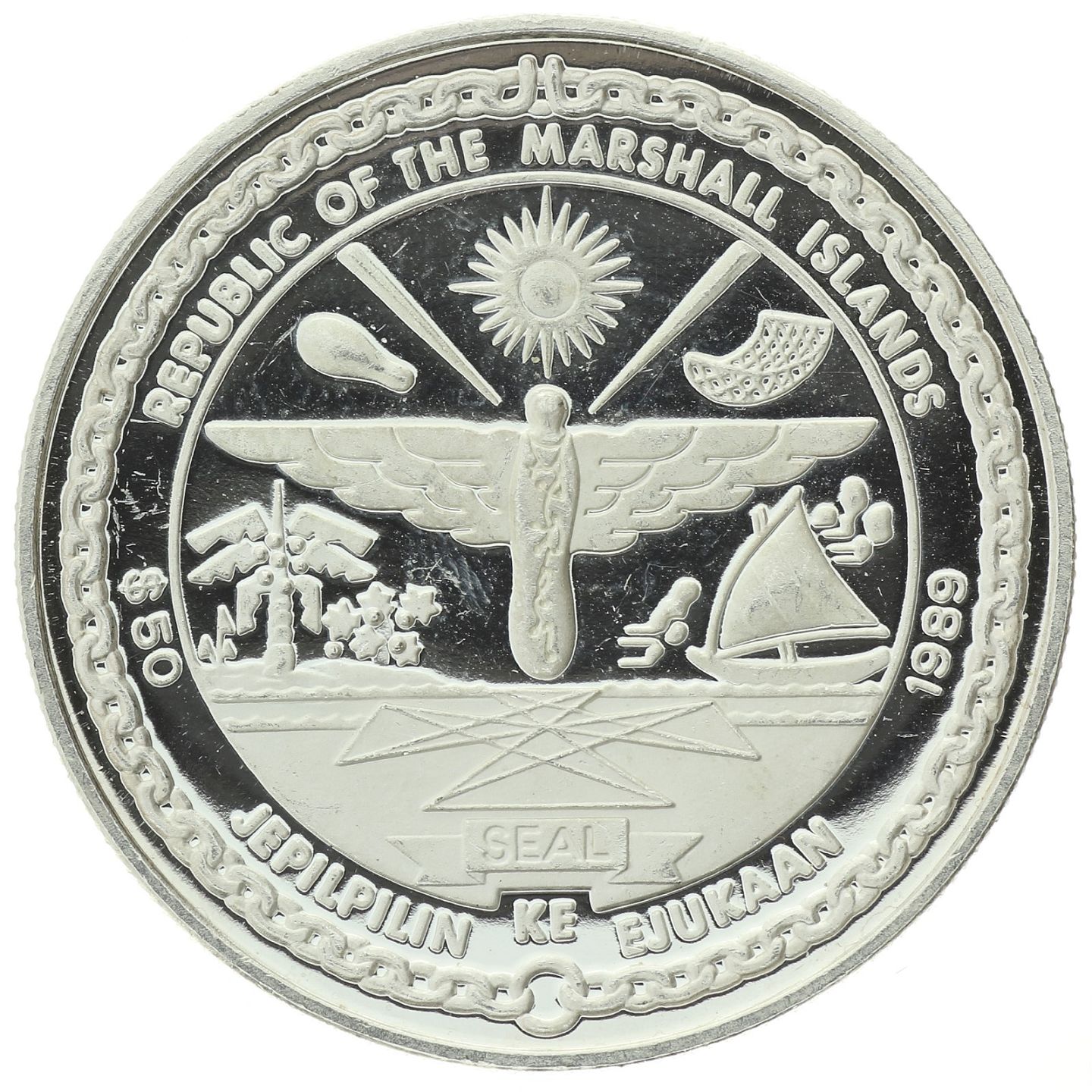 Marshall Islands - 50 dollars - 1989 - 'First landing on mars 1976' - sølv - 1oz finsølv
