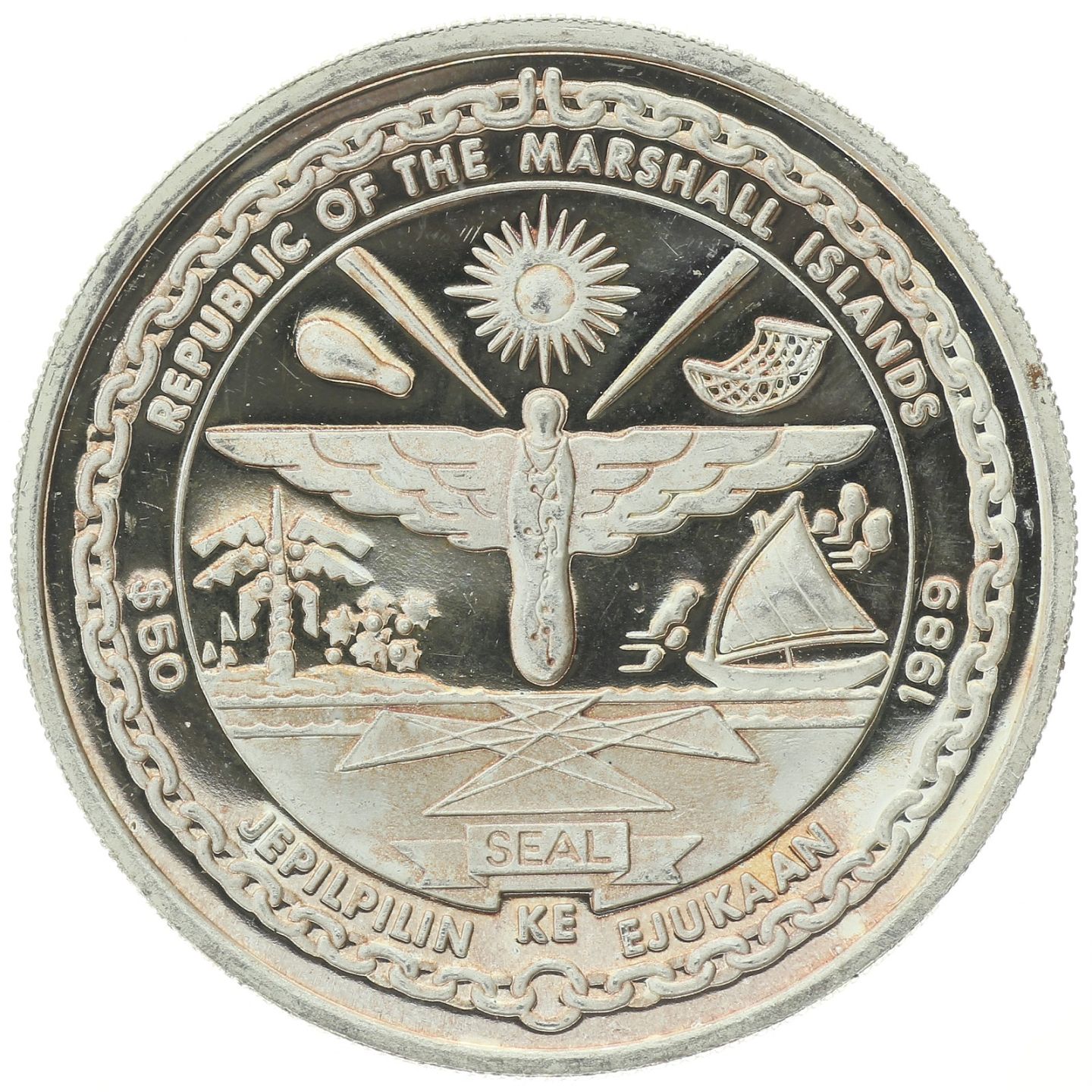 Marshall Islands - 50 dollars - 1989 - 'First man on the moon 1969' - sølv - 1oz finsølv