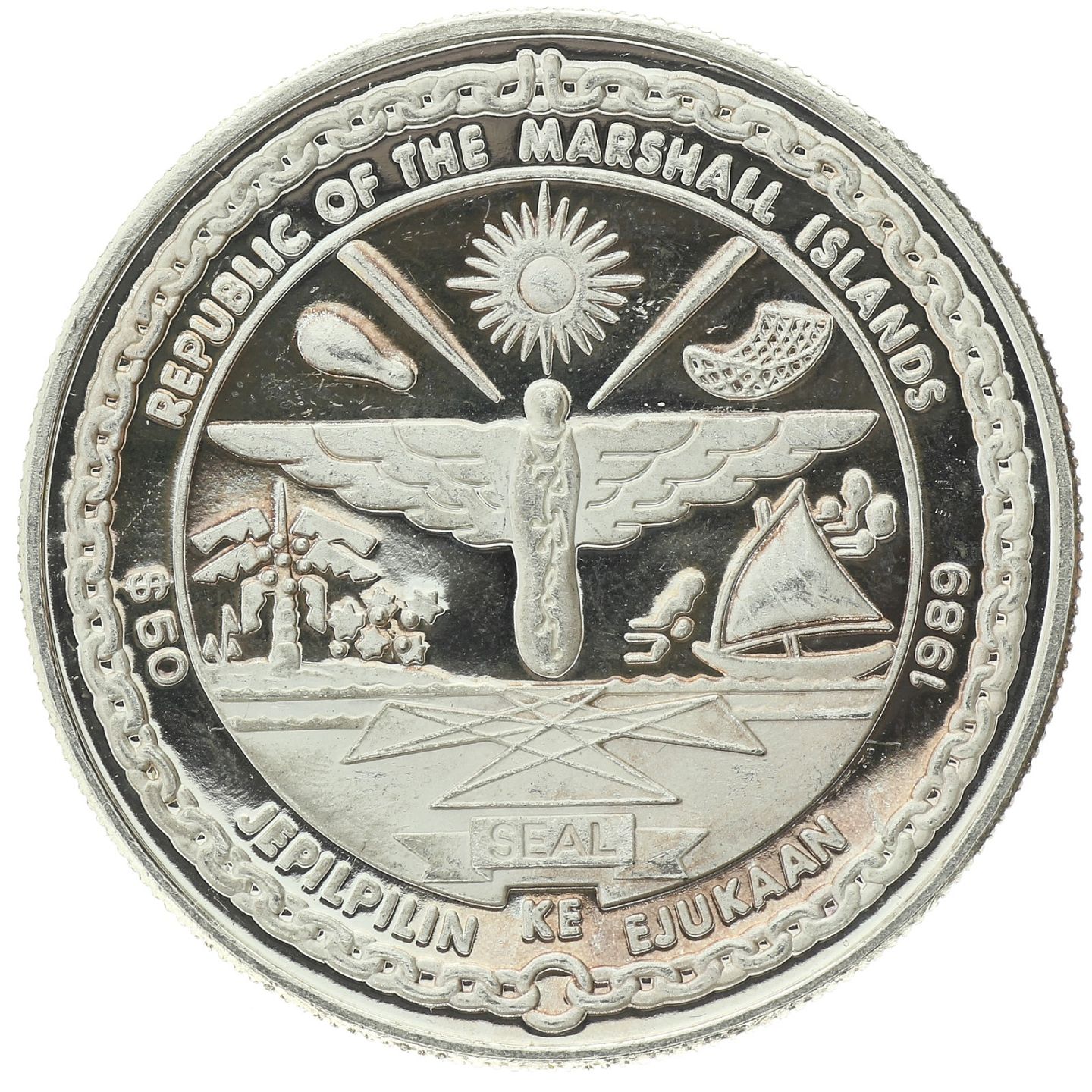 Marshall Islands - 50 dollars - 1989 - 'First international joined space flight 1975' - sølv - 1oz finsølv