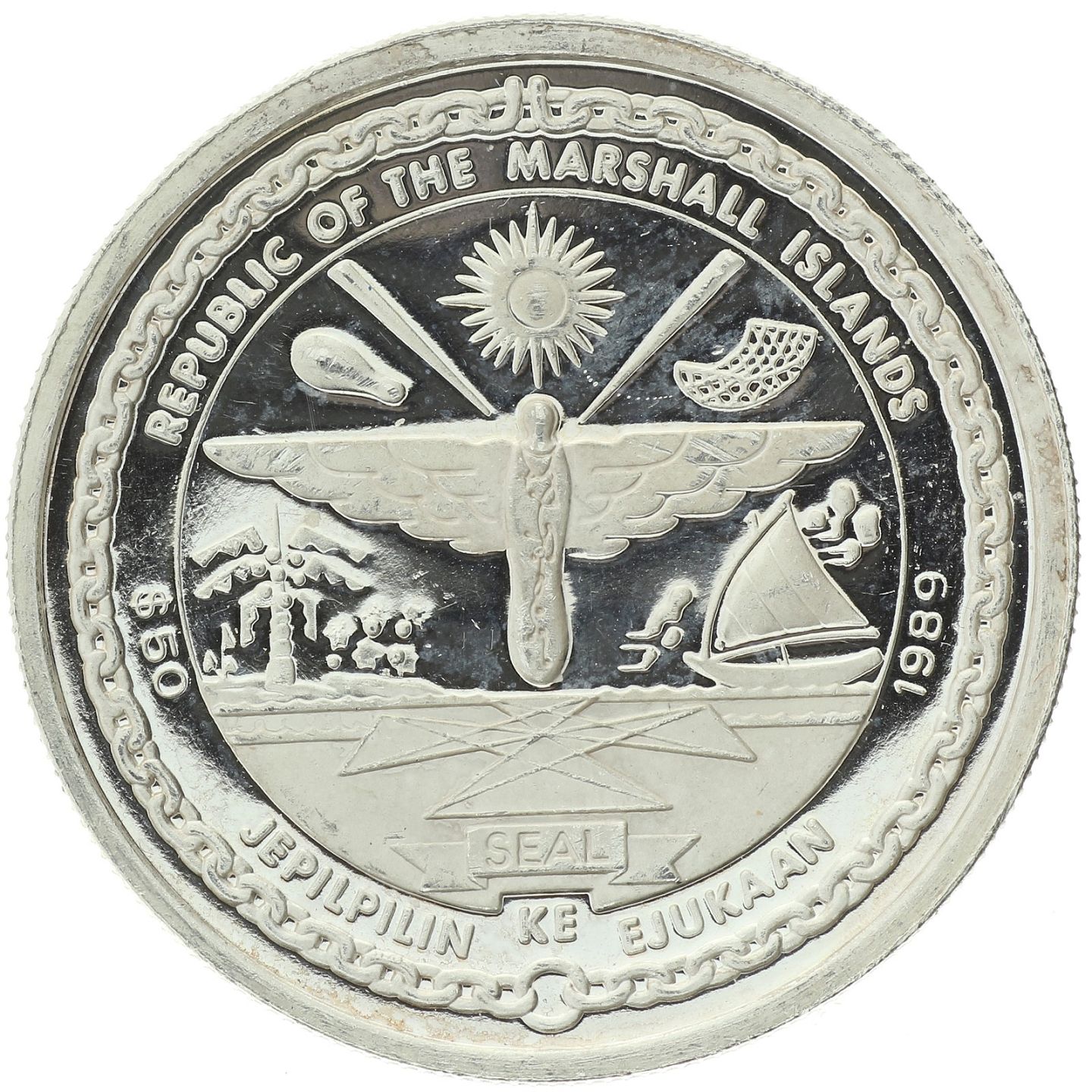 Marshall Islands - 50 dollars - 1989 - 'First soft landing on the moon 1966' - sølv - 1oz finsølv