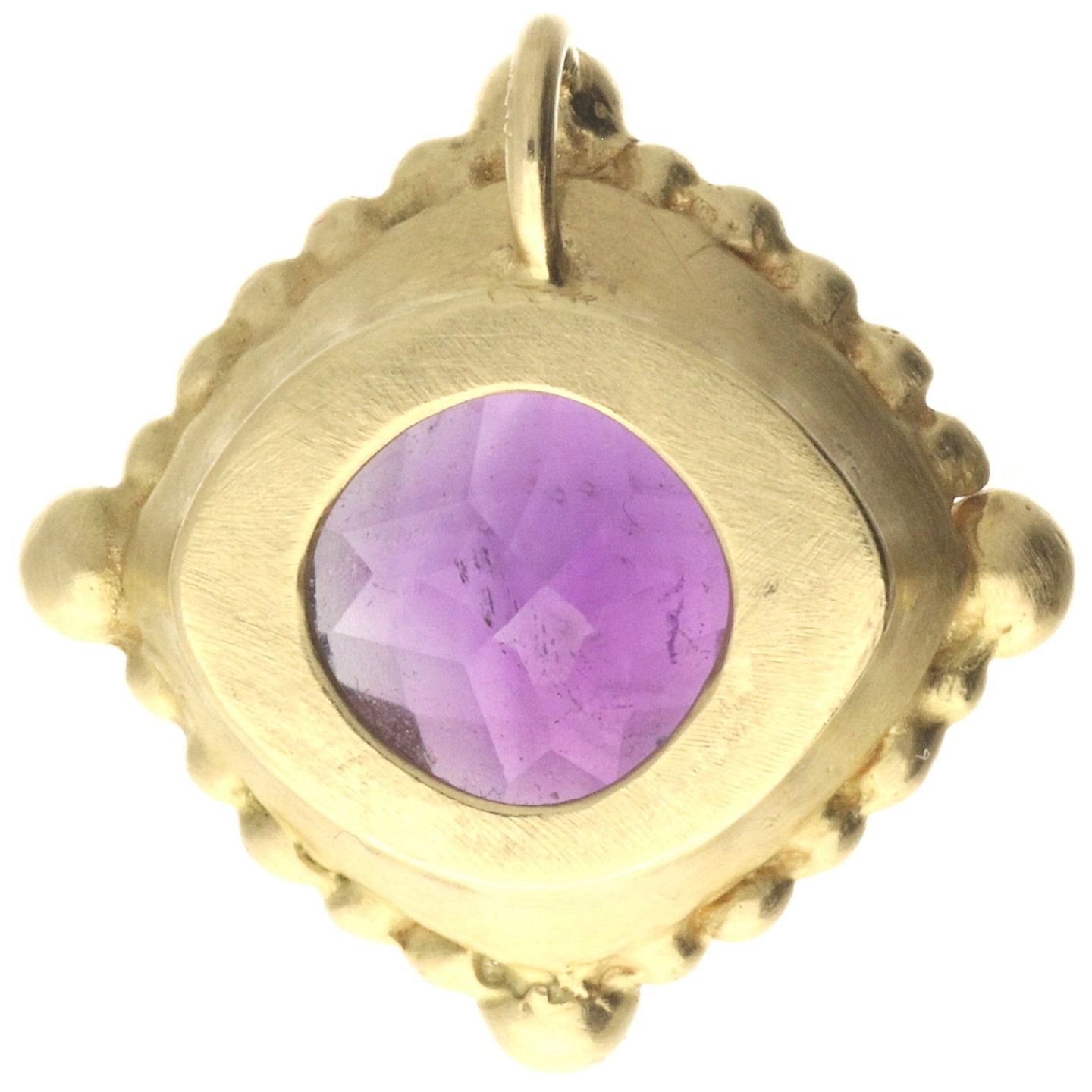 Vedhæng udført af 18 kt. guld fattet med lilla sten samt fire brillanter på hver ca. 0.015 ct, i alt ca. 0.06 ct. Vægt: ca. 7,87 gr. B. ca. 2 cm.