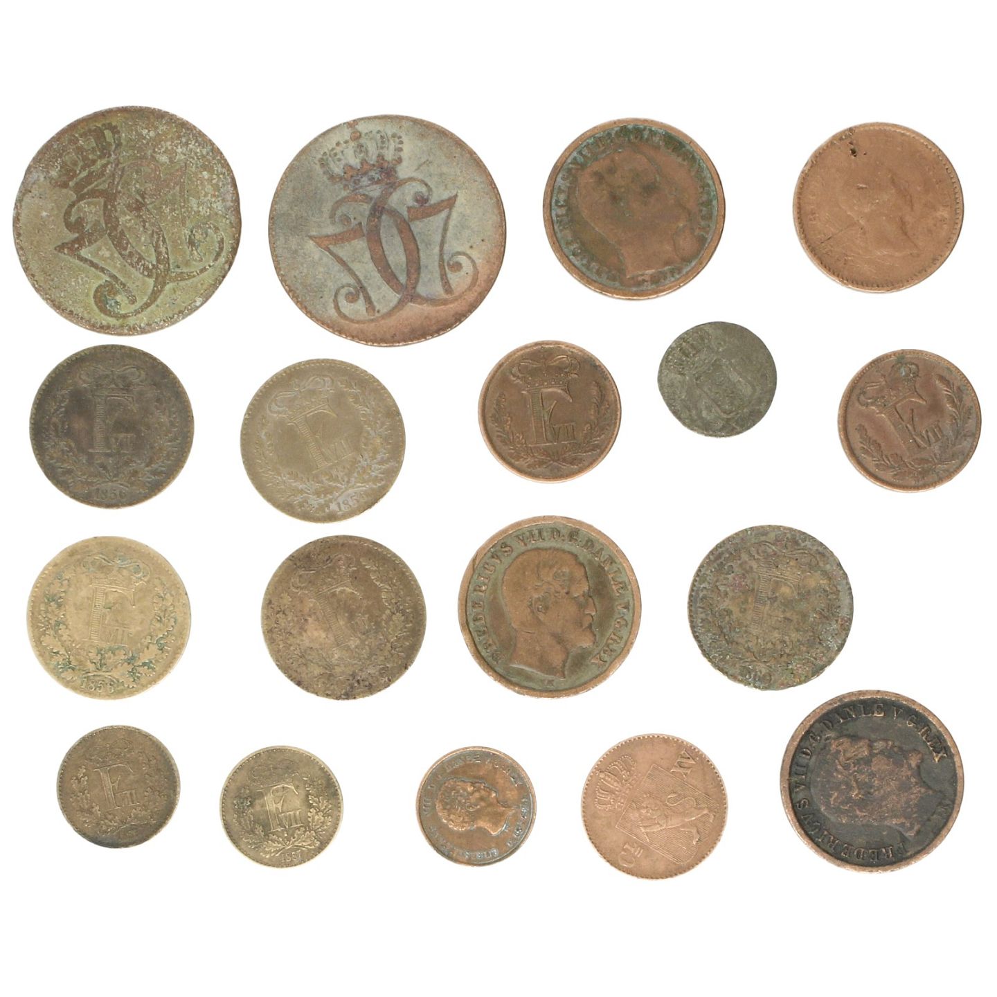 17 gamle danske mønter, og en enkelt gammel norsk mønt.
