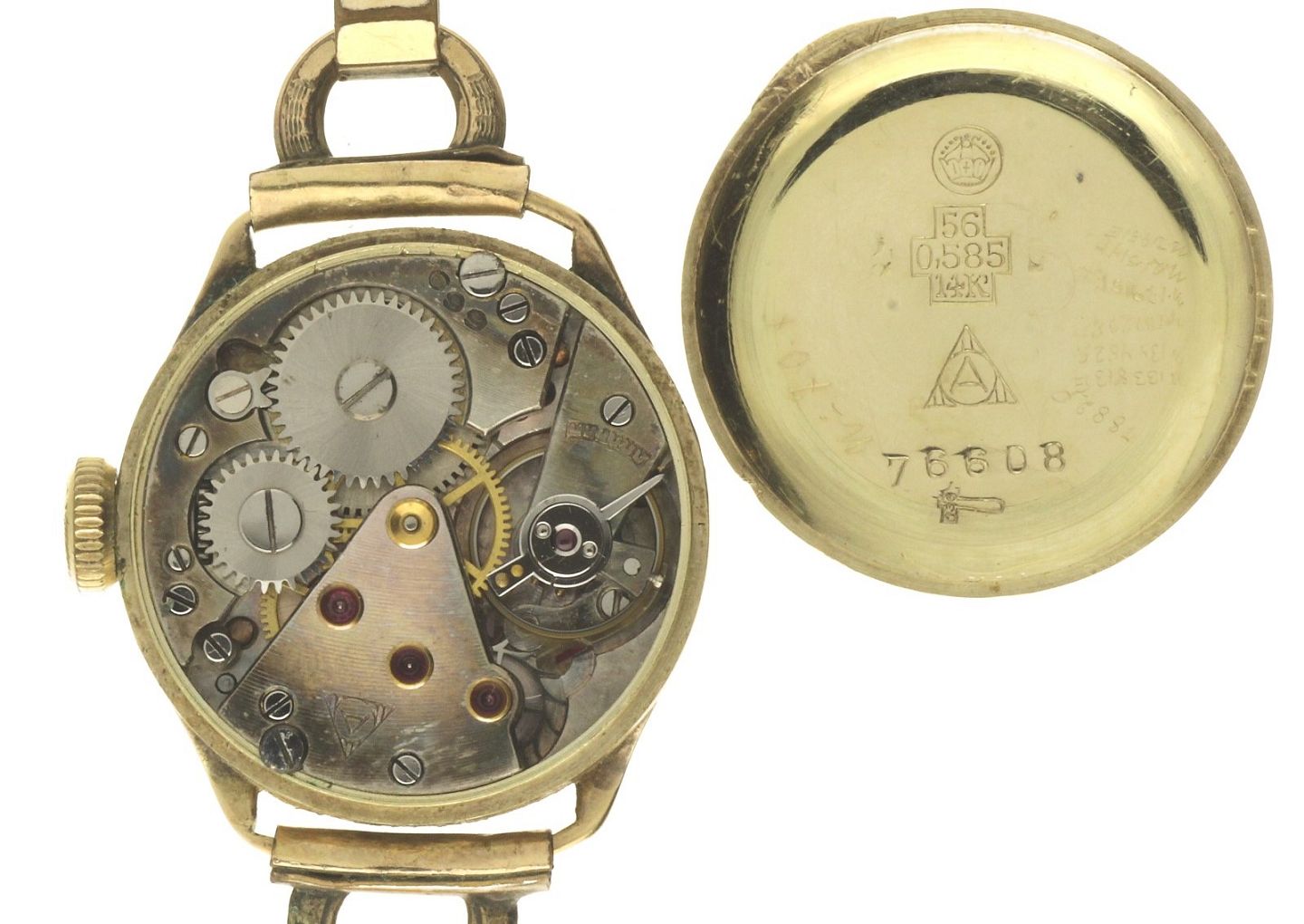 Uret har en 22mm kasse af guld 14kt. kassen er monteret på en lænke som er udført i forgyldt metal. Uret har en patineret gylden skive med stregindeks. Uret er udstyret med et mekanisk værk med manuelt optræk.