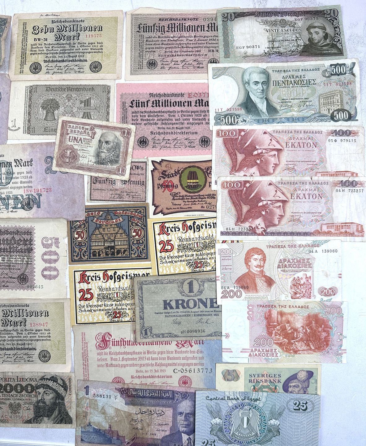 Pengesedler fra bl.a Portugal, Polen, Brasilien, Rumænien, Egypten, Cambodia og mange flere.