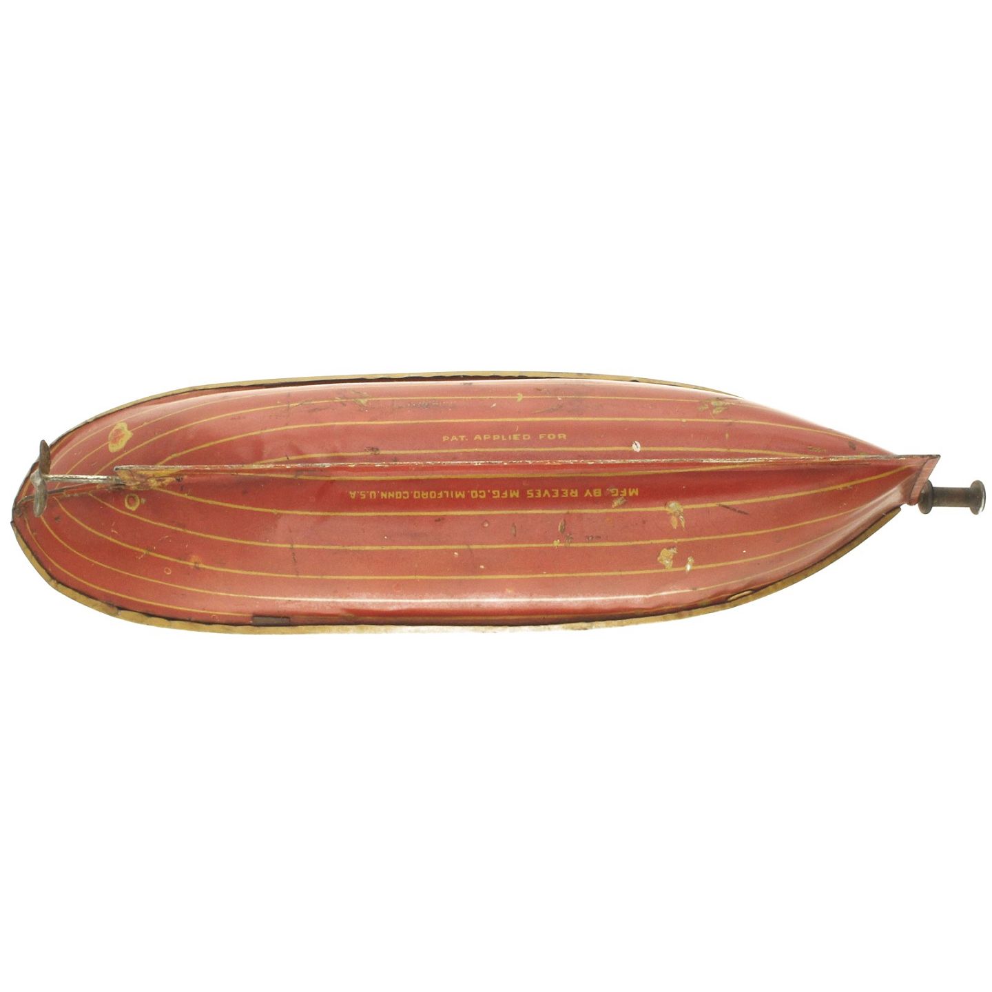 MFG. By Reeves - Ældre båd af bemalet blik inkl. sømand samt amerikansk flag. L. 21,5 B. 6 cm.