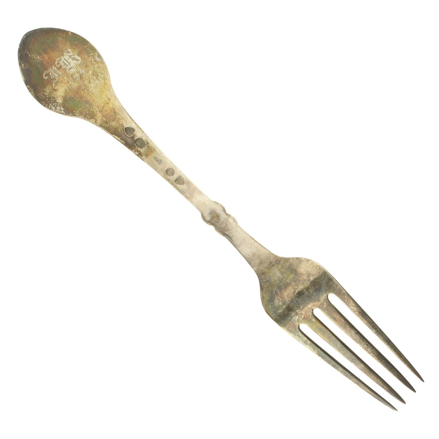 Tretårnet sølvgaffel - monteret med 2 krone 1906