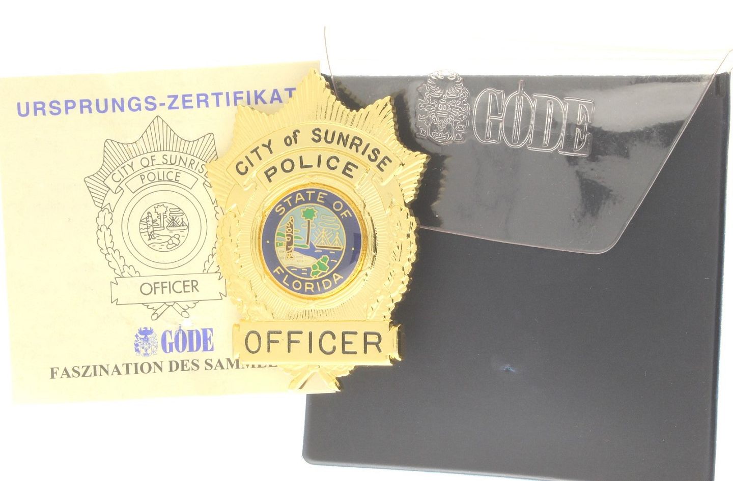 GODE - City of sunrise police - Officer memorial badge. State of Florida. Fremstår i beskyttelsesetui med tilhørerende certifikat.