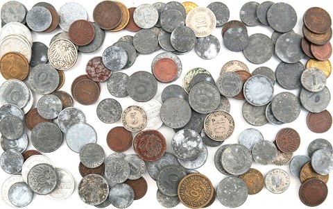 1-, 2-, 5-, 10- og 50-Pfennig Mønter(1876-1950) Zink, Aluminium, Kobber, AluminiumBronze