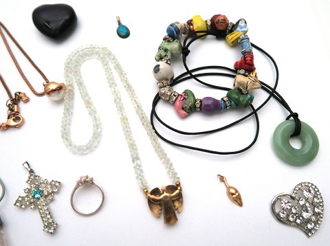 Lot diverse Bijouteri i form af halskæder, vedhæng og ring.