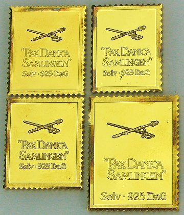 Pax Danica - 4 stk. forgyldte SØLVBARRER præget som frimærker