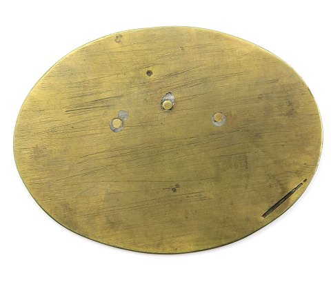 Danmark, Polititegn af messing med påsætning i form af våbenskjold flankeret af to løver af sølv. Ovalt tegn 78 x 57 mm.