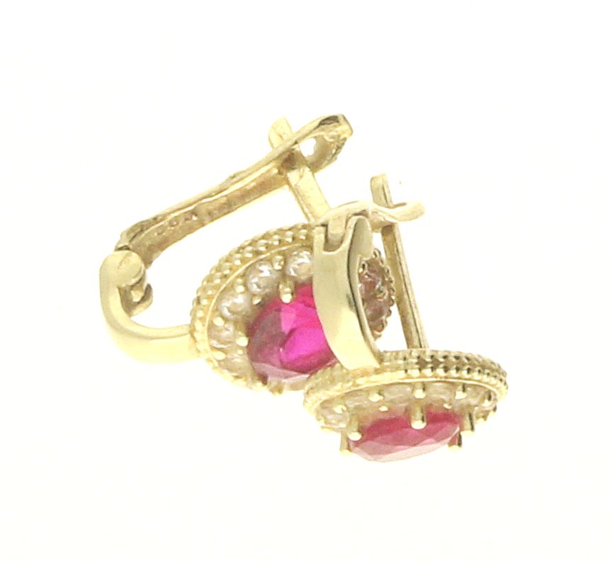 Par ørestikker udført af 14 kt. guld fattet med røde og klare sten. L. ca. 9,5 mm. Vægt: ca. 1,53 gr.
