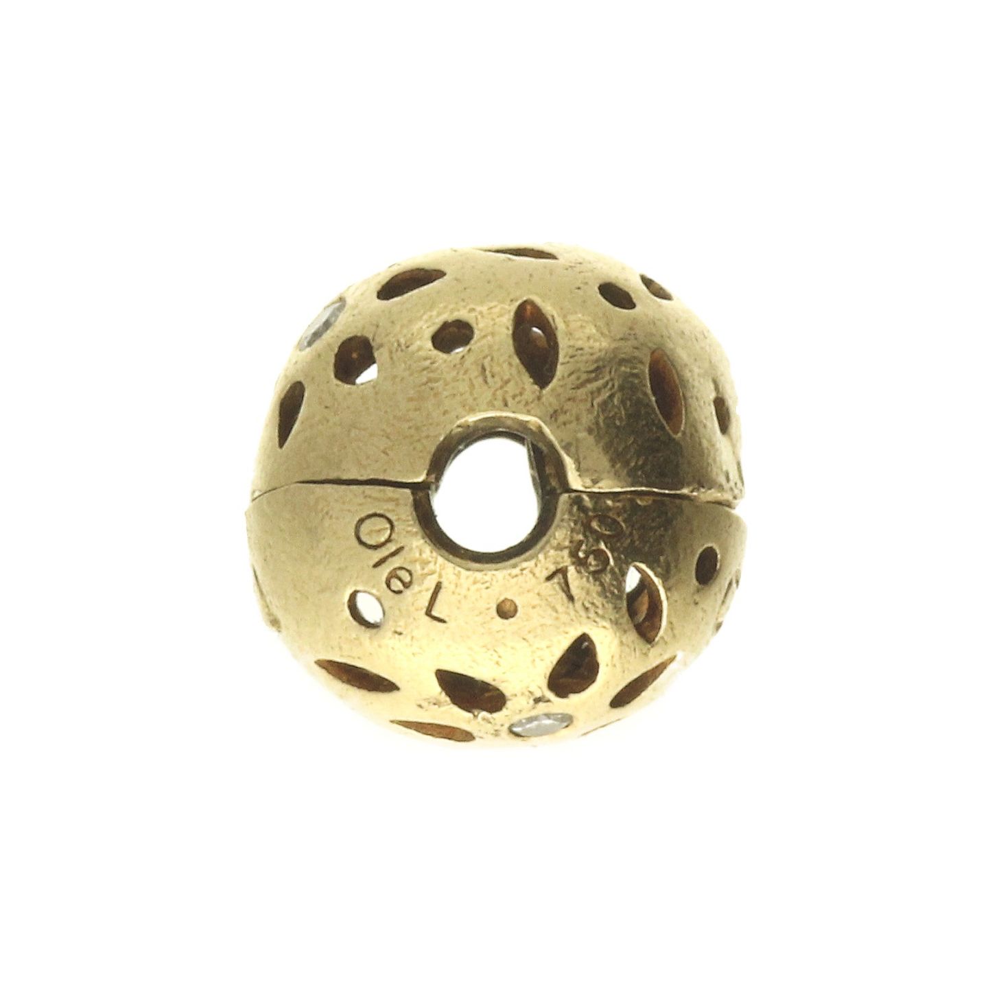 Ole Lynggaard - Lace smykkelås udført af 18 kt. guld prydet med tre brillantslebne diamanter på i alt ca. 0.03 ct. Ø. på kuglelåsen: 1 cm. Vægt: ca. 2,68 gr. Designet af Charlotte Lynggaard.