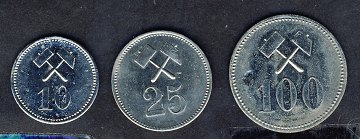Grønlandsk Minedrift, komplet sæt 10, 25, 100 øre