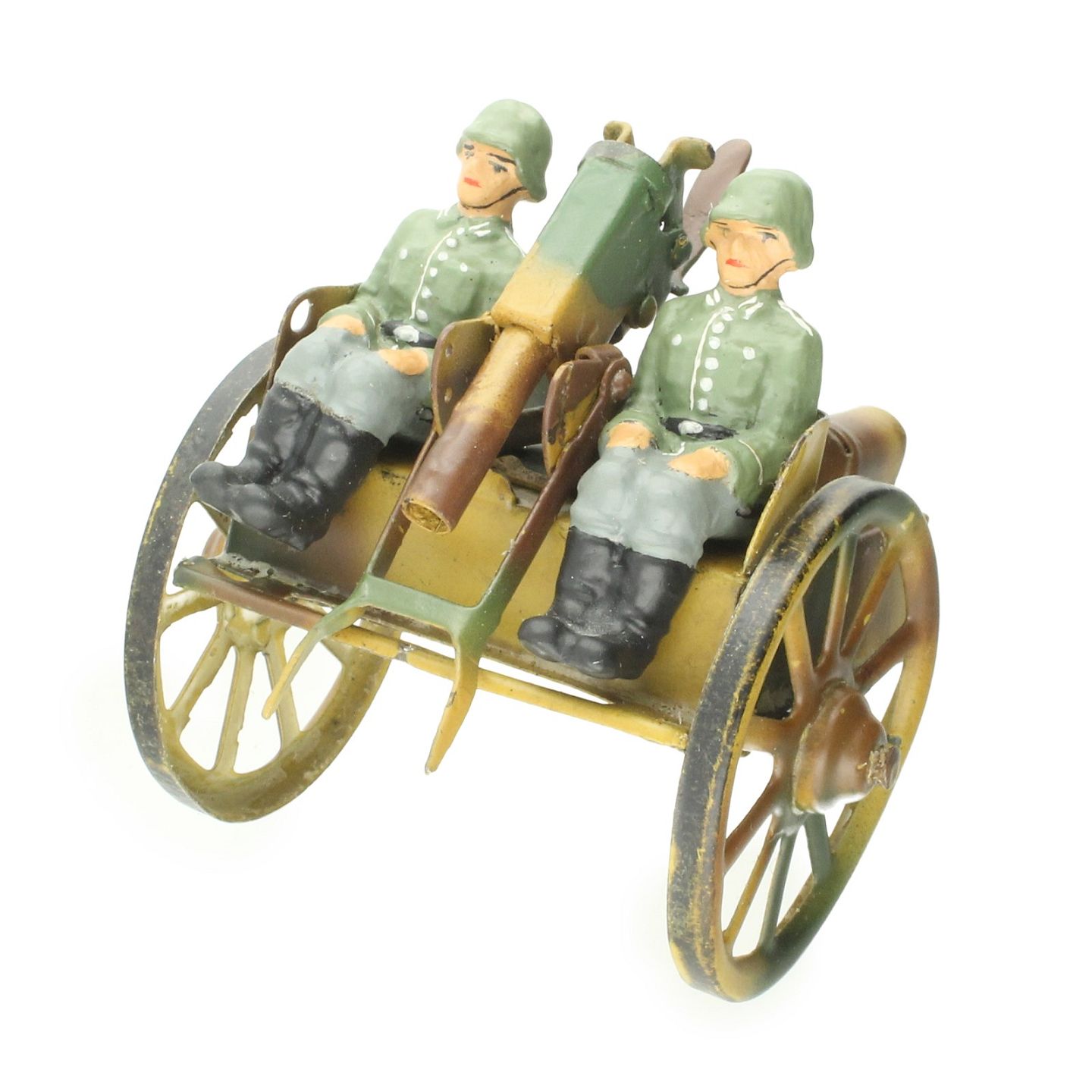 Lineol, Duro m.fl. - En samling vogne inkl. to soldater samt tre heste. L. ca. 7-16 cm. Vogne fremstår senere bemalet samt duro hest med revner.