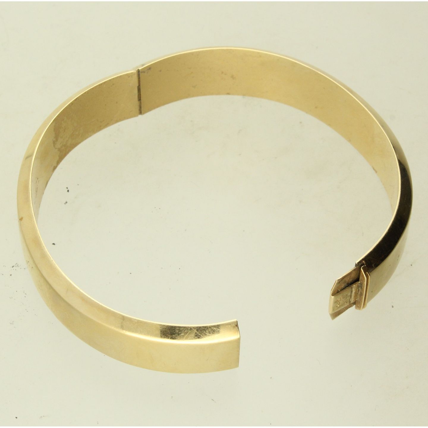 Armring udført af 14 kt. guld. B. 13,23 mm., indvendig ca. 60 x 54 mm. Vægt: ca. 21,10 gr.