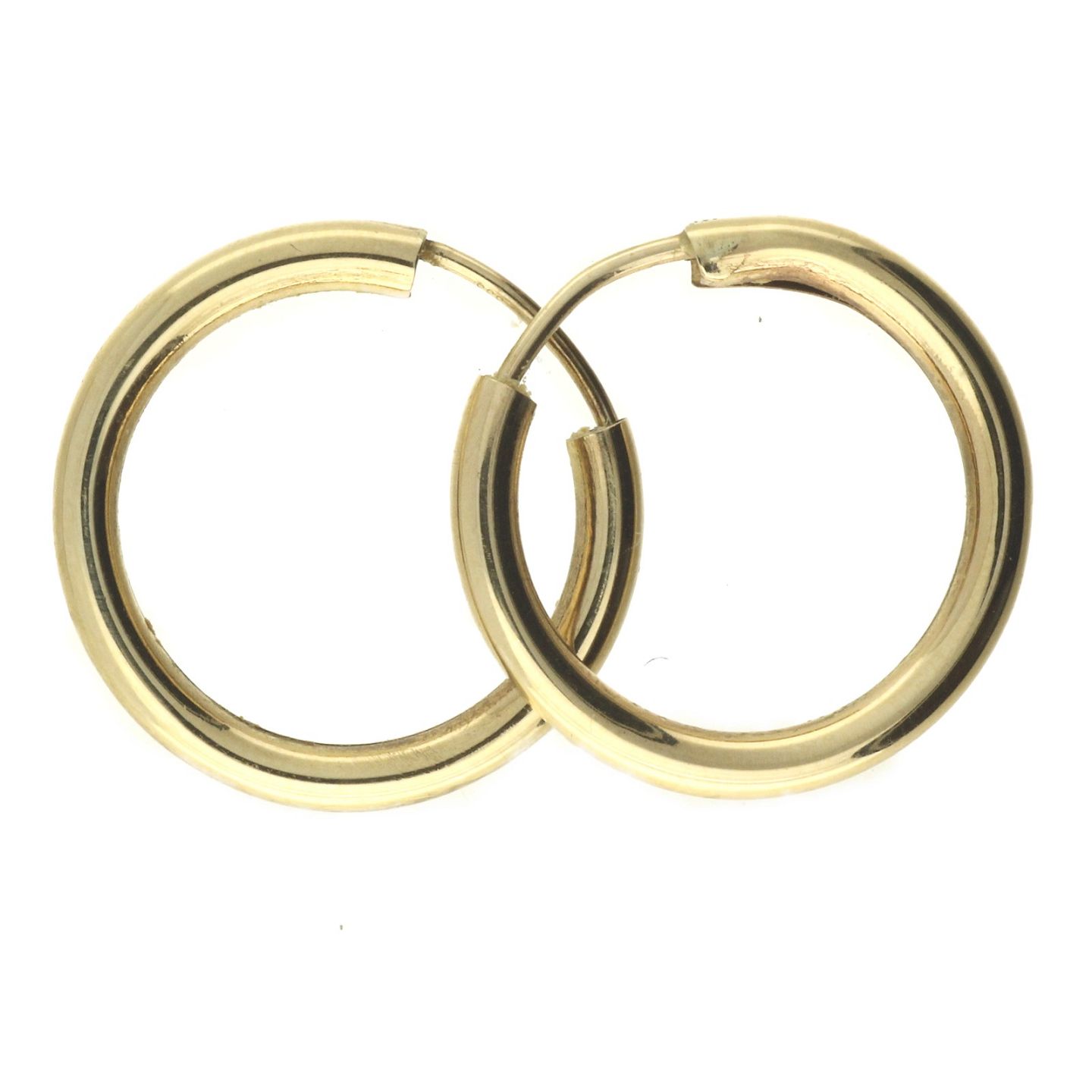 Par creoler udført af 8 kt. guld. Ø. 20,25 mm. Vægt: ca. 1,10 gr. En creol med åben samling / revne.