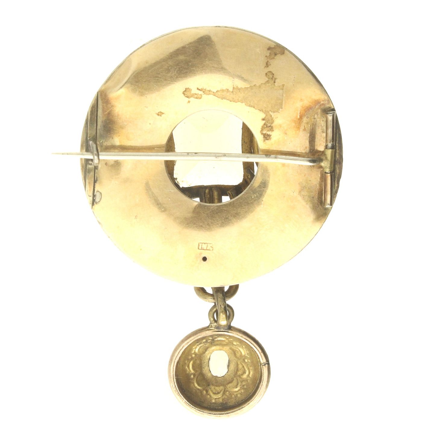 Broche udført af gulddouble. Ø. 41,30 mm. Vægt: ca. 14,9 gr.