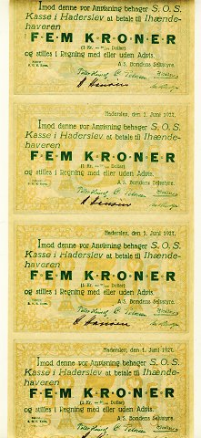 S.O.S, 5 krone, 4 pieces, and a lot of emergency notes